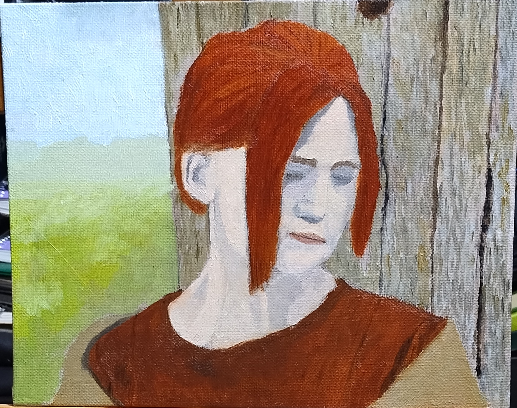 2. Loss – I found a lady in a film whose expression encapsulated a feeling I am well acquainted with – loss. So I captured a frame and took it to Krita. From there, I created a photo composition including background and period clothing. I used Davinci Eye to help me transfer a drawing of it to my canvas. I then painted it. My wife said the finished painting scared her.